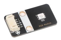 5050全彩LED,共阴极驱动,接限流电阻保护,可通过PWM调节RGB三基色混色得到不同的颜色。
