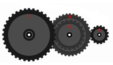 14) 如图所示,若A齿轮是主动轮,B齿轮和C齿轮同轴,以下叙述错误的是?( )