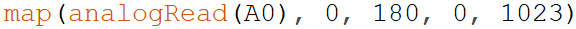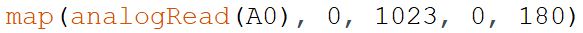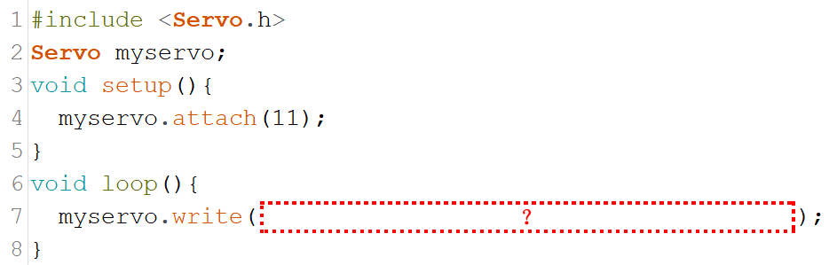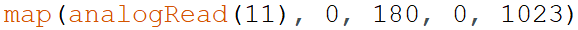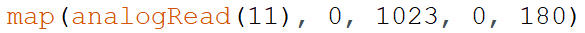 11) 我们使用电位器来控制舵机转动,电位器接在A0引脚,舵机接在11号引脚。程序如图所示,其中?(问号)处比较合理的程序是?( )