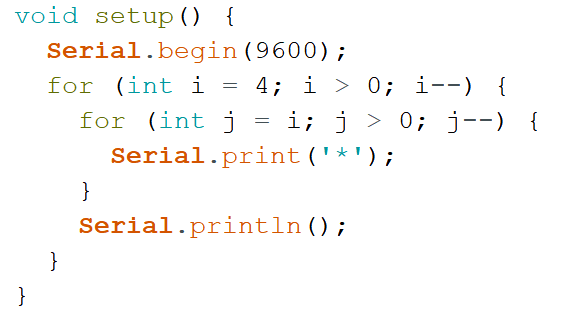 3) 下图程序执行后,串口监视器输的图形是?( )