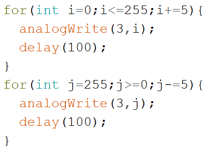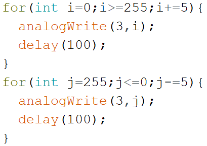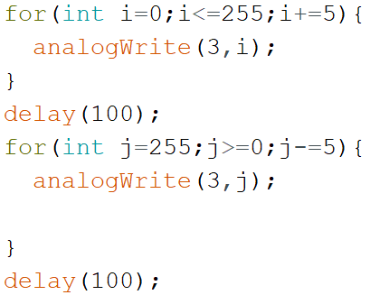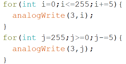15) 如果将LED灯接在3号引脚上,以下程序中实现“呼吸灯”效果比较合理的是?( )