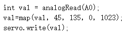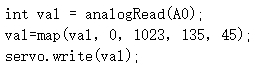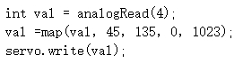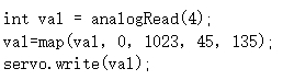 17) Arduino Nano主控板,通过电位器控制舵机转动角度,电位器连接到A0引脚,舵机连接到4引脚,下列选项中,可实现当电位器从一端旋转至另外一端时,舵机在45度至135度之间转动的程序是?( )。