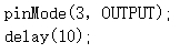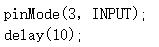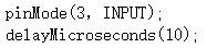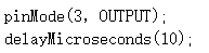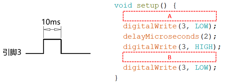 16) Arduino UNO/Nano主控板,通过引脚3发送如下图所示的高电平触发信号,程序中红框A和B分别对应的程序是?( )。