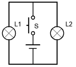 10) 如图所示电路,分析灯L1、灯L2及电压表的连接方式,下列选项正确的是?