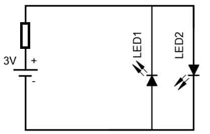 8) 下列电路图中LED1和LED2为5mm红色LED灯,下列表达正确的是?