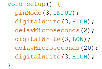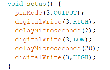 5) Arduino UNO/Nano主控板,通过引脚3向一个传感器发送一个20微秒的低电平触发信号,如下图所示,下列程序正确的是?( )