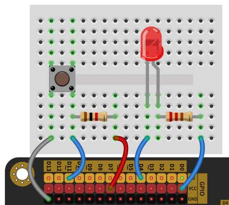 4) Arduino UNO/Nano主控板,电路搭设如下图所示,下列选项中,关于LED控制引脚模式设置正确的是?( )