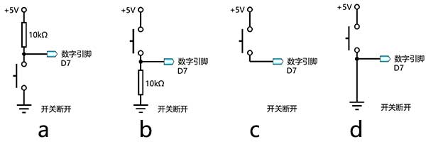 17) Arduino UNO/Nano主控板,电路搭设如下,下列选项中,实现按键开关按下后,LED熄灭的程序段是?( )