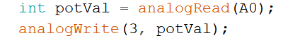Arduino UNO/Nano主控板,通过电位器控制LED灯亮度的变化,部分程序如下,当电位器从一端旋转至另外一端时,LED灯会亮灭几次?( )