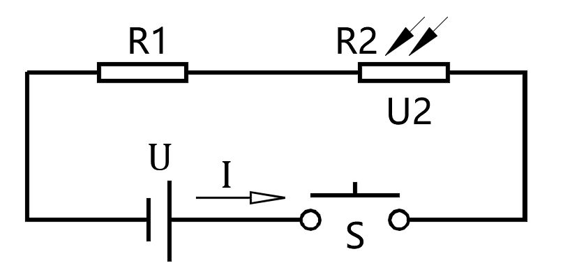 16) 如图所示电路,当光照强度减小时,下列选项中,关于电路中U2说法正确的是?( )。