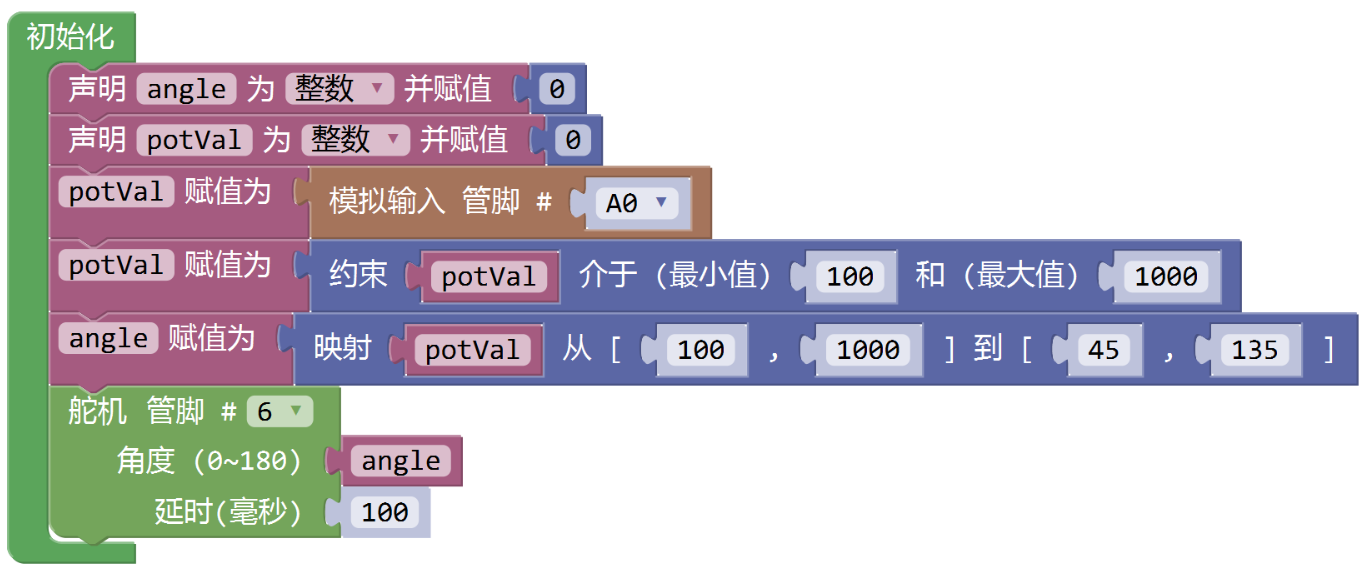 10) 下列选项中,读取电位器模块的返回值,所对应的模块是?( )。