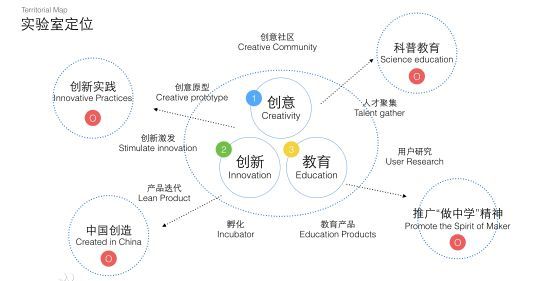 创客教育实验室立足于创意、创新、教育三个核心维度。通过创意社区激发创新,通过创意原型、产品迭代、项目孵化践行创新实践、促进中国创造,在Living Lab模式下进行用户研究、研发教育产品;促进科普教育;通过创客模式践行“做中学”精神。