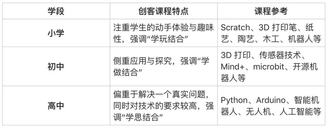 项目制学习方式,实实在在的作品/产品作为产出;3D打印、开源硬件、传感器、编程都是比较常见创客教育工具和形式。