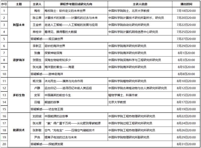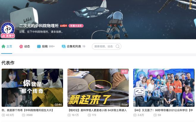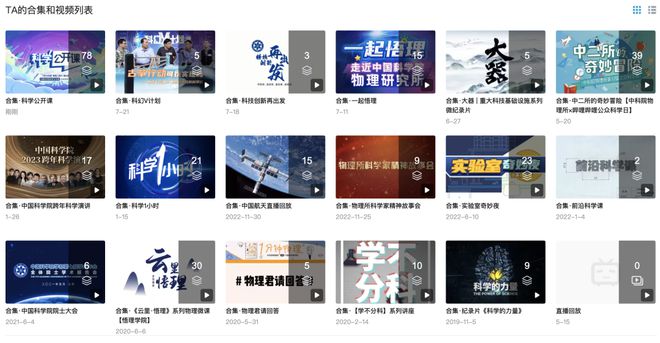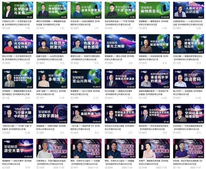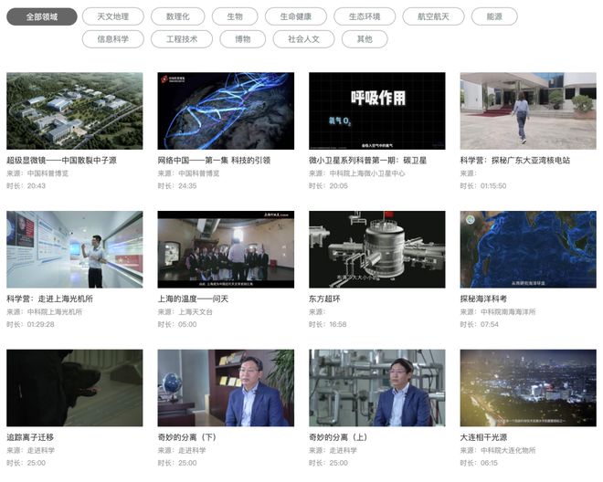比如一起悟理、重大科技基础设施系列纪录片、中科院跨年科学演讲、中国航天直播回放、实验室妙夜、前沿科学课等等。