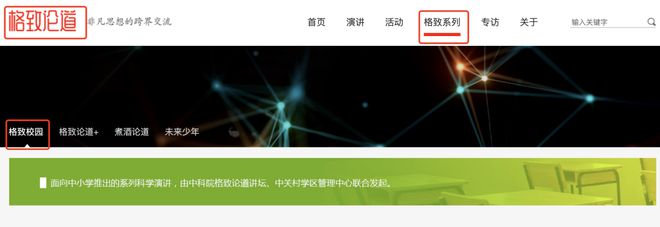 另外,中科院还给中小学生制作了专属的科普网站,大家打开格致论道专栏-格致系列-格致校园就可以找到。