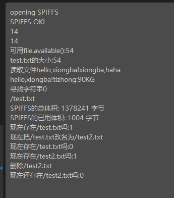 SPIFFS.exists("/test.txt");5. SPIFFS.remove("/test.txt"); //删除某个文件