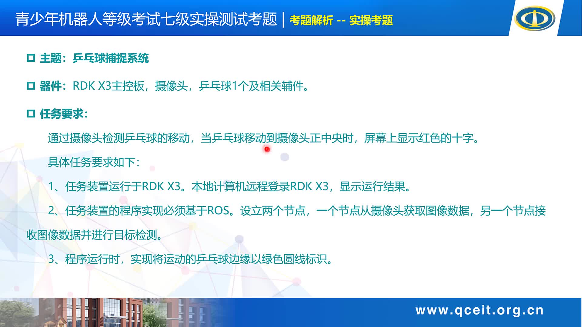 青少年机器人技术七级、八级着重于机器人智能处理能力的学习,基本编程语言为Python,采用RDK X3作为主控。