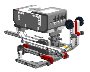 1、 本节课的搭建核心为底部的行动结构,需要按照视频中的参考搭建。并且运行的时候需要不断找到一个合适的启动位置,才能够顺利运行,否则可能出现原地转动电机的现象。