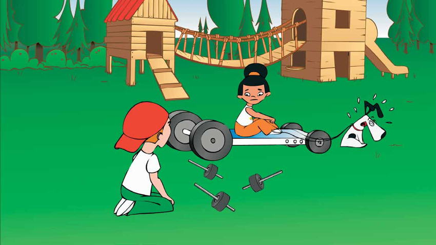 杰克和吉尔发生了点小口角,于是到外面冷静冷静。吉尔坐在小车上,让小狗佐格拉她,但是小狗拉不动。