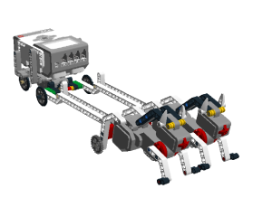 1、 本节课的搭建没有特殊结构,动力部分是中型电机驱动的滑轮和大型电机(雪橇犬)的部分做辅助。