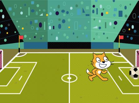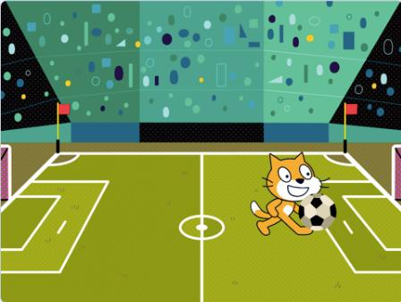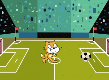 (1)保留默认小猫角色,添加足球角色:Soccer Ball。