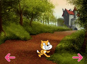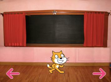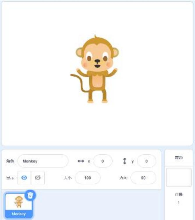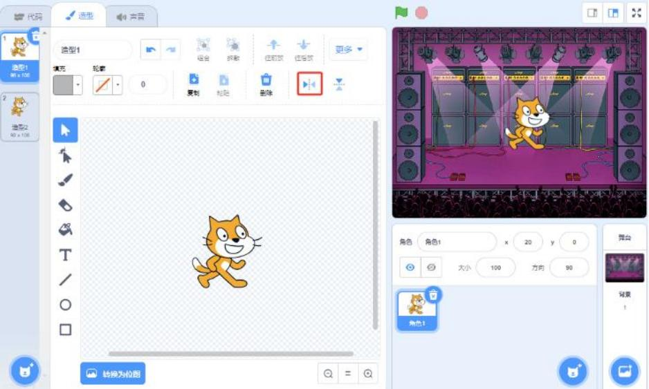 (1)保留默认小猫角色,添加两个箭头角色:Arrow1。