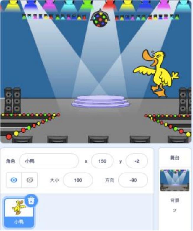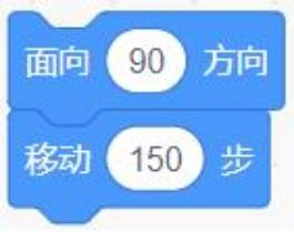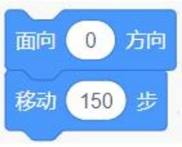 6) 小鸭初始位置和方向如下图所示,距离聚光灯舞台 150 步,下列哪个选项能让 小鸭走到聚光灯舞台的位置?( )。