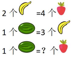 14) 已知 2 个香蕉等于 4 个草莓,1 个西瓜等于 3 个香蕉, 如下图所示,那么 1个西瓜等于几个草莓?( )。