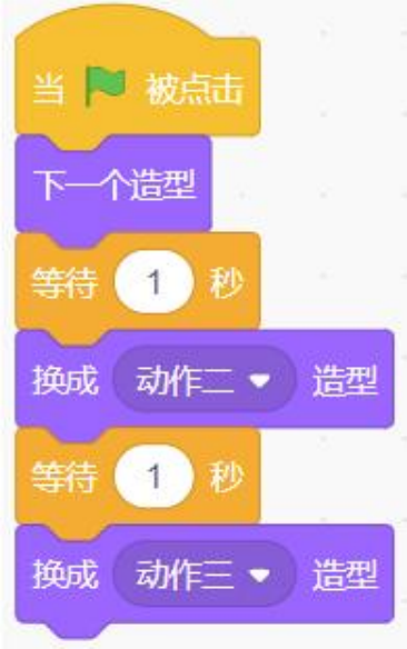 10) 程序运行前角色造型是“动作二 ”,运行下列哪个选项的程序,可以让角色 从“动作三 ”变成“动作一 ”,再变成“动作二 ”?( )。