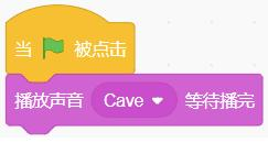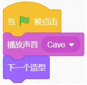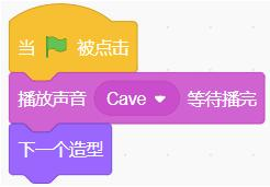 15) 程序运行前小鱼的造型为第一个造型,下列哪个选项能实现播放声音"Cave" 的同时,立刻切换到下一个造型?( )。
