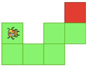 小瓢虫的位置和方向如下图所示,沿着绿色方块走到红色方块的位置,需要左转几次?( )。