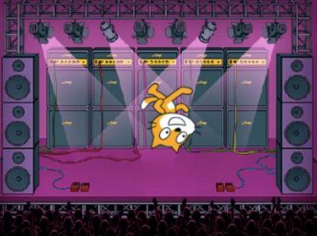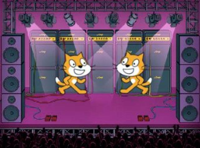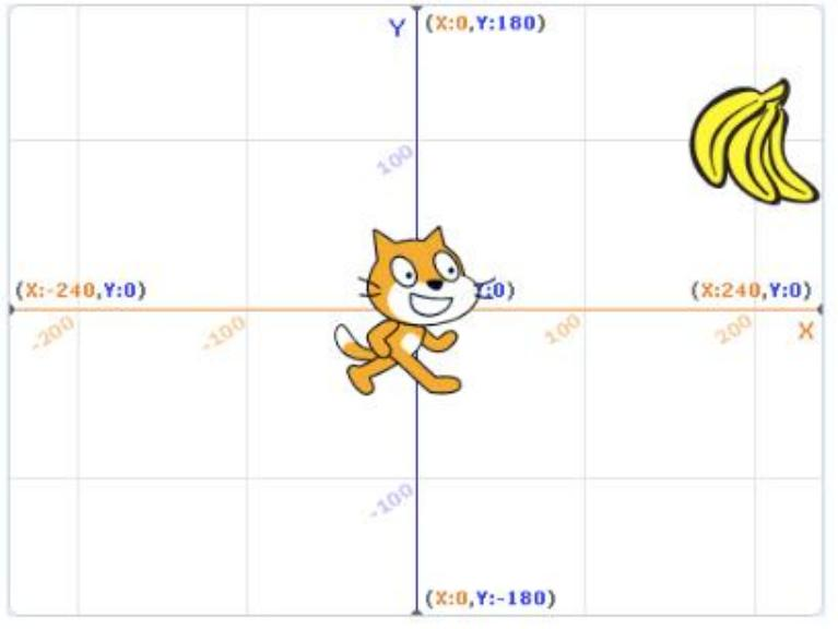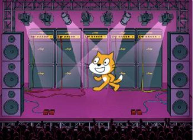 (1)点击绿旗,初始背景为Chalkboard,角色初始位置和造型如下图所示。