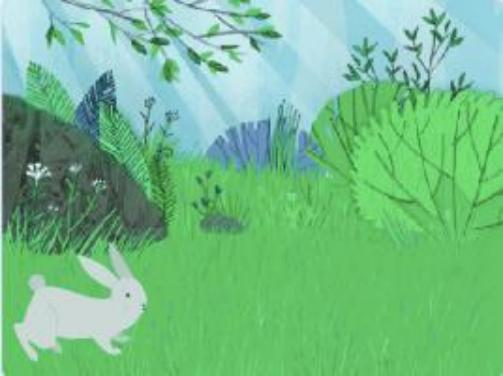 9) 兔子的初始位置如下左图所示,从舞台最左端到最右端有 300 步,下列哪个选 项的程序可以让兔子移动到舞台最右端?( )。