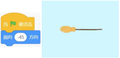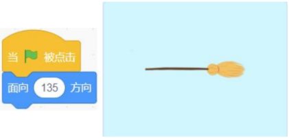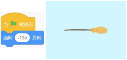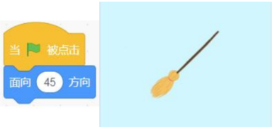 扫帚默认面向 90 方向,它的旋转方式设为左右翻转,下列程序和效果正确的是?( )。