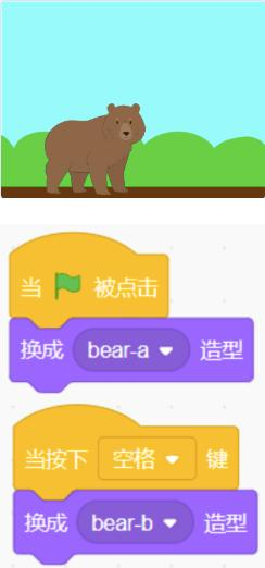 点击绿旗后,按十次空格键,最终切换为“bear-b”造型。( )。