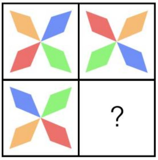 7) 仔细观察下图中的图案,下列哪个选项放在问号处,是符合规律的?( )。