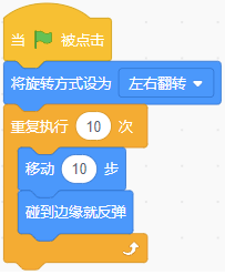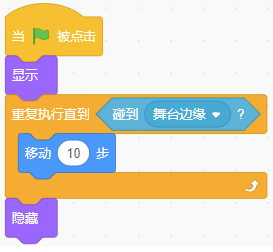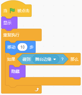 (3)小猫碰到舞台边缘,播放声音Oops,并移到初始位置(0,0)。