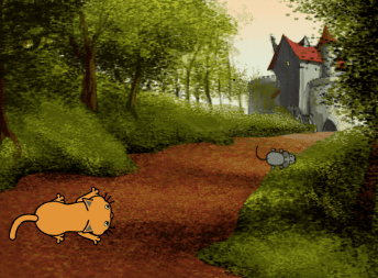 (2)按下上下左右键,能够控制小猫上下左右移动,面向方向也随着变化。