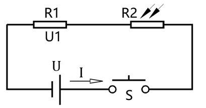 19) 如图所示电路,开关S闭合,当光照强度减小时,下列选项中,关于电路中U1说法正确的是?( )