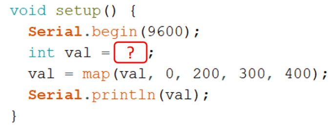 12) Arduino C程序如下,当串口监视器输出的值为350时,变量val的初值是?( )
