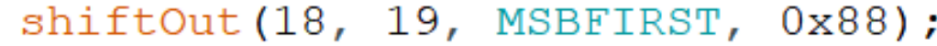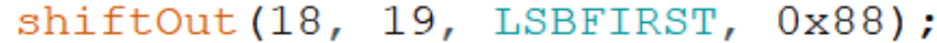 一位共阳数码管和74HC595移位寄存器芯片连接如下图所示,数码管显示字符为“A”,使用shiftout函数向74HC595发送数据,下列选项中正确的程序是?( )