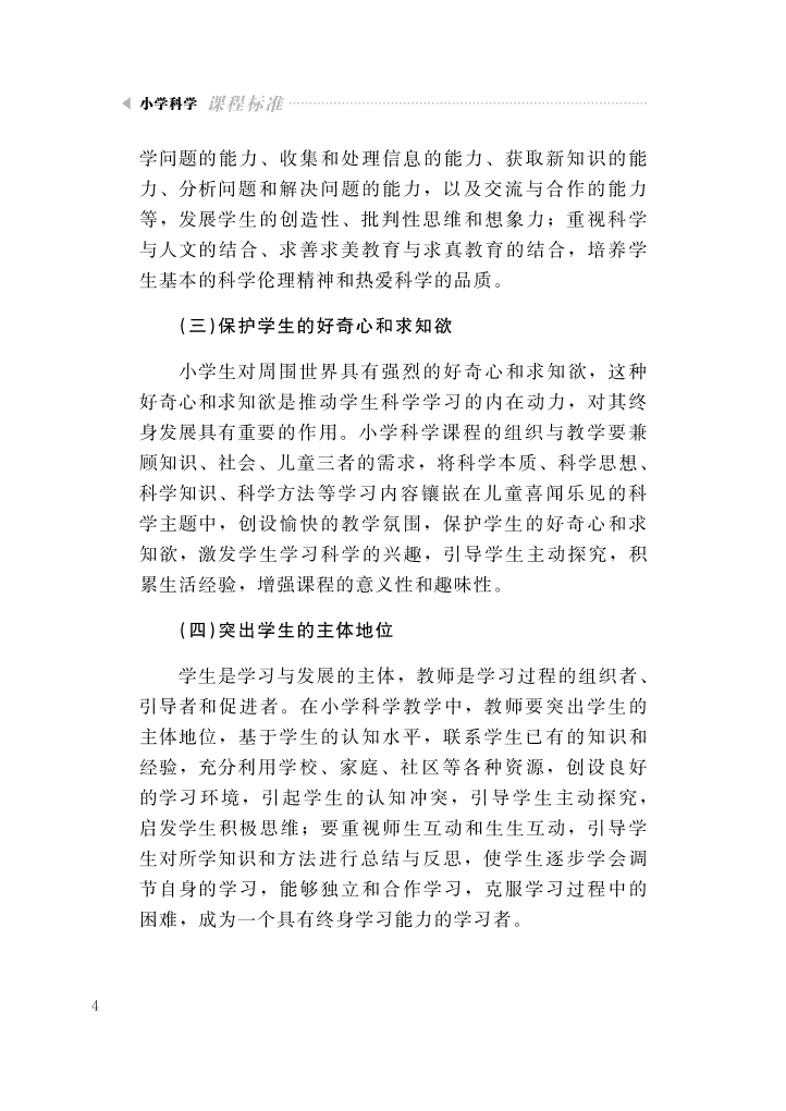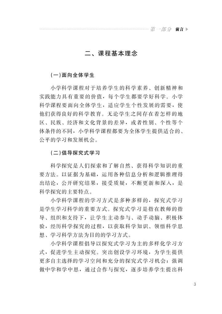 小学科学课程实施的主要形式是探究活动。因此,课程内容部分还针对每个主要概念设计了活动建议,供教材编写者和教师参考。