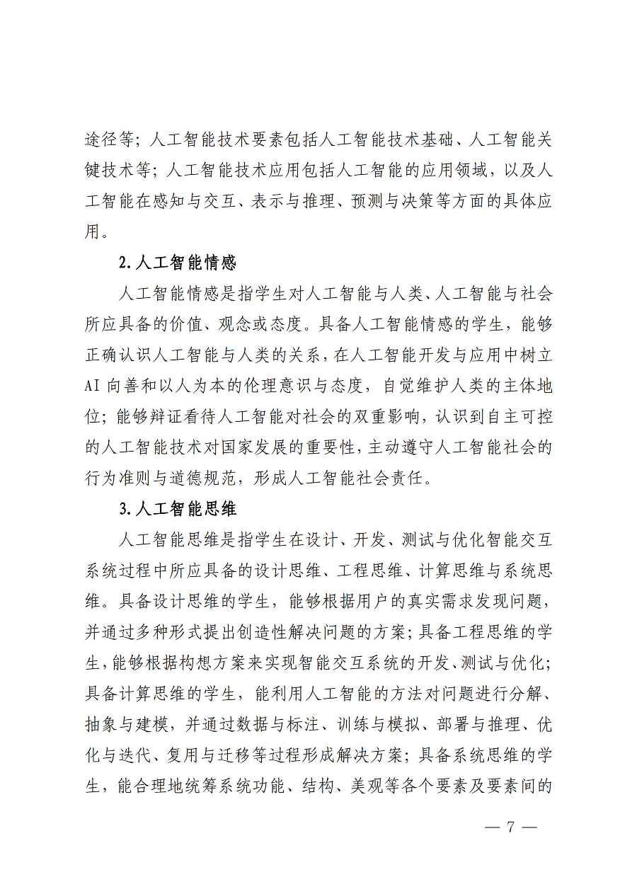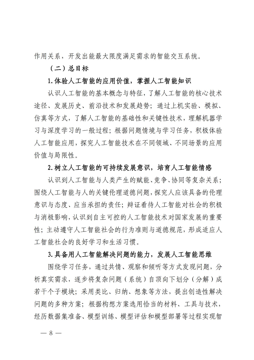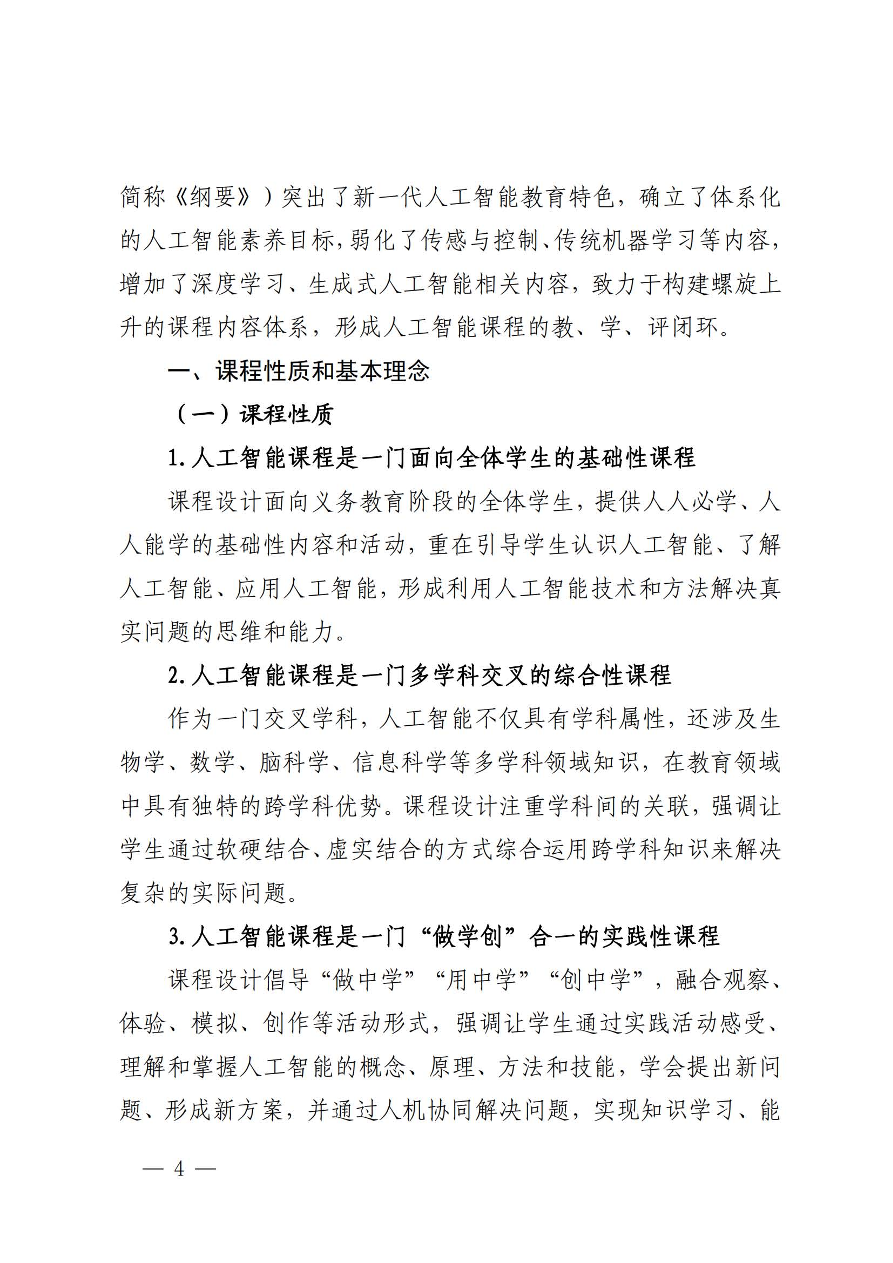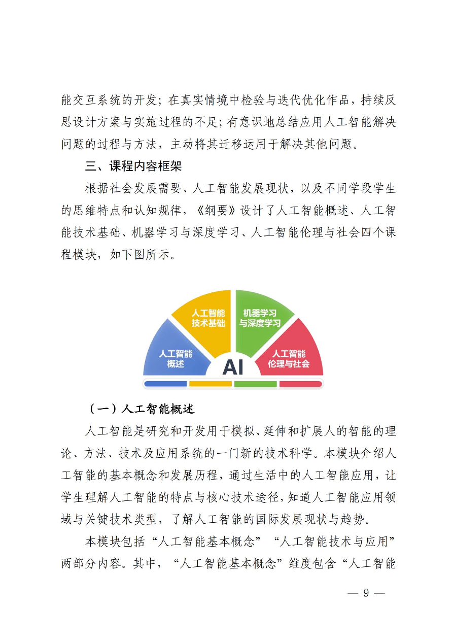 根据《教育部办公厅关于加强中小学人工智能教育的通知》(教基厅函〔2024〕32号)、《北京市推进中小学人工智能教育工作方案(2025—2027年)》(京教办〔2025〕2号)等文件要求,推动人工智能教育高质量实施,特制定本纲要。