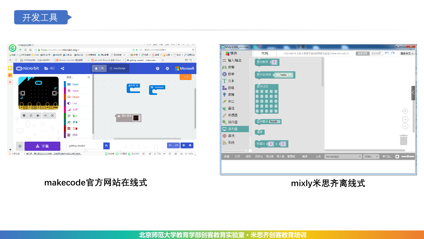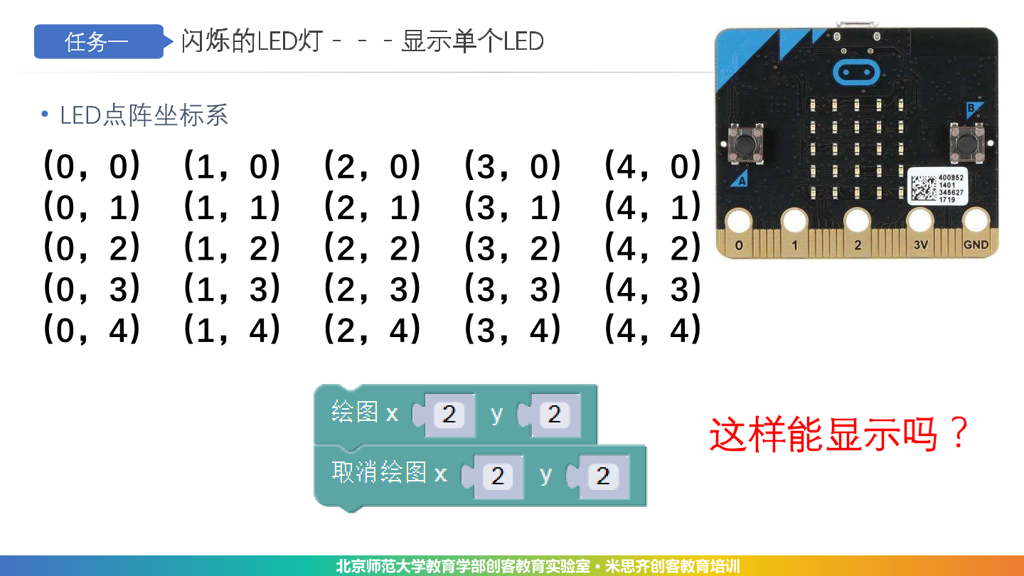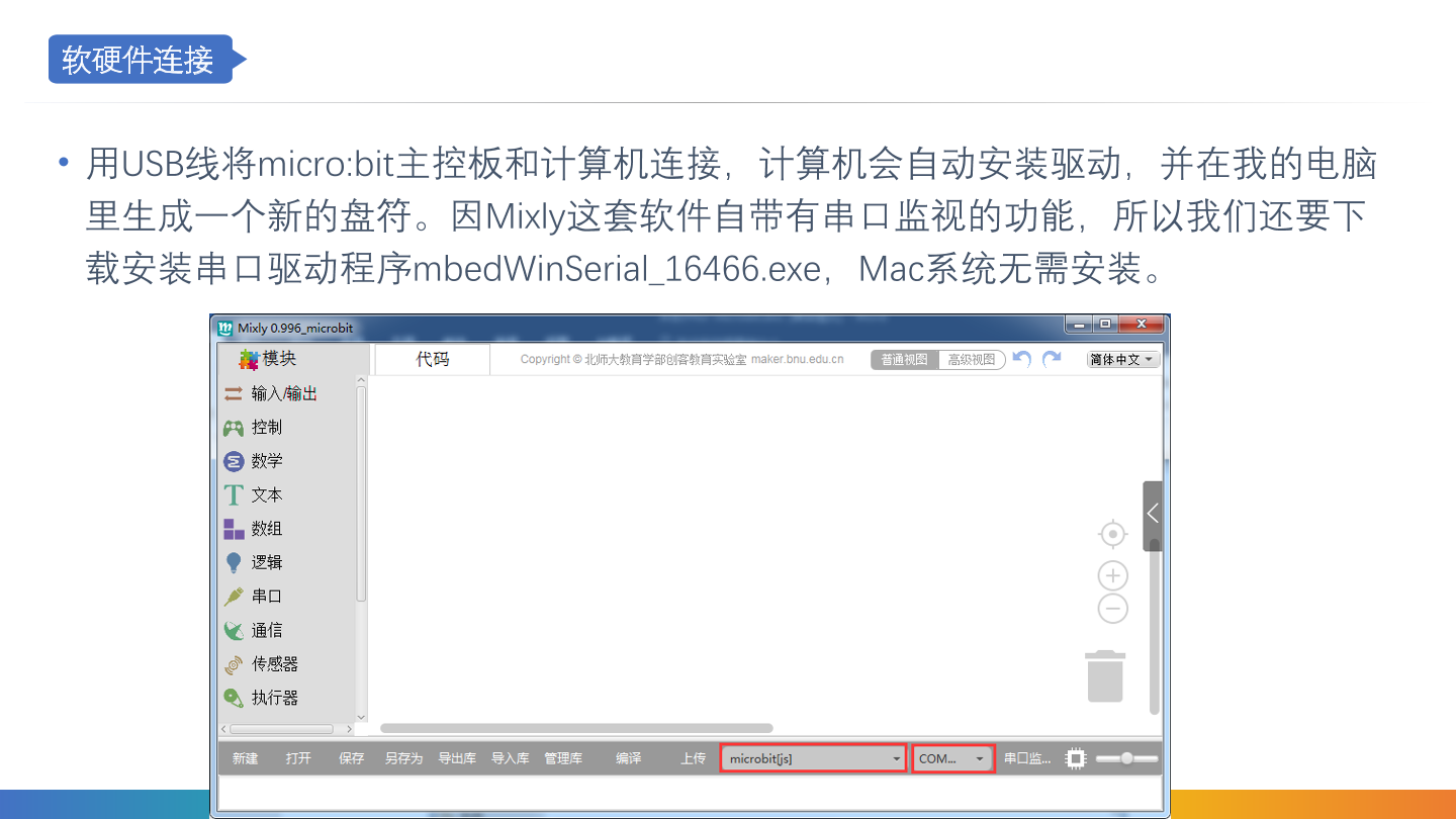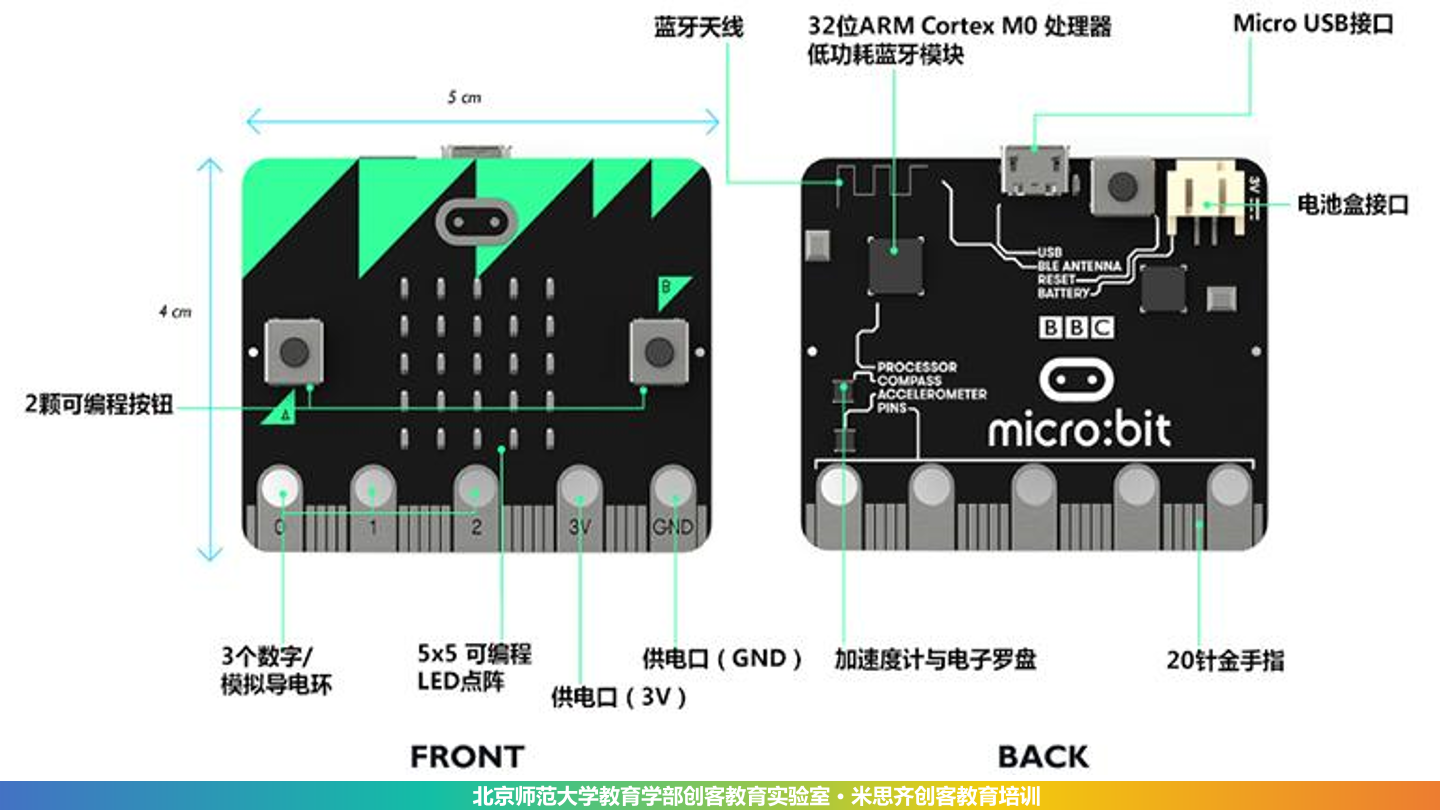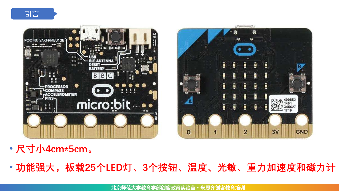 本课主要⾯向对象为⼩学⽣,是以⼤班教学为课程背景进⾏的开发。在器材上没有对micro:bit进⾏任何的扩展和补充,所以请⼤家在使⽤时根据各校情况⾃由加⼊相应的材料或者内容。