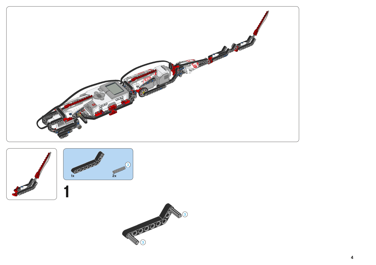 任务1搭建成了一个没有头的蛇。这是一个测试你的机器人的好时机,只需要确认你已经把所有部件都安装正确了。运行程序1可以对声音效果的发挥进行复核,此时机器人的动作有点儿像蛇。如果机器人没有任何动作,那就意味着你必须回去充当故障检修员,检查你的连接和搭建。