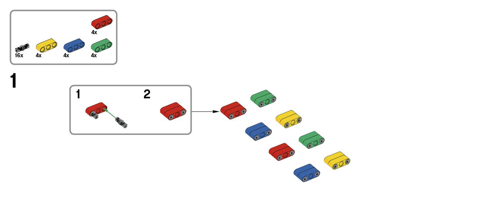 颜色分拣机利用了LEGO教育版套装中所特有的拼装式履带。它的右边安装了颜色传感器,以检测4种不同颜色的横梁,横梁要两个一对地放在一起。你需要让颜色传感器去检测这些横梁,然后把它们按照检测的顺序依次放入到左边的漏斗装置中。在你放入所有横梁之后,漏斗会自动跟随履带进行前后移动,并把这些横梁按照颜色分为4叠(茶杯或水杯也可以,任何你放在漏斗前的装置都行)。这个分类的任务给人的印象并不非常深刻,但它却是学习基础编程以及学习使用颜色传感器的不错的方式。