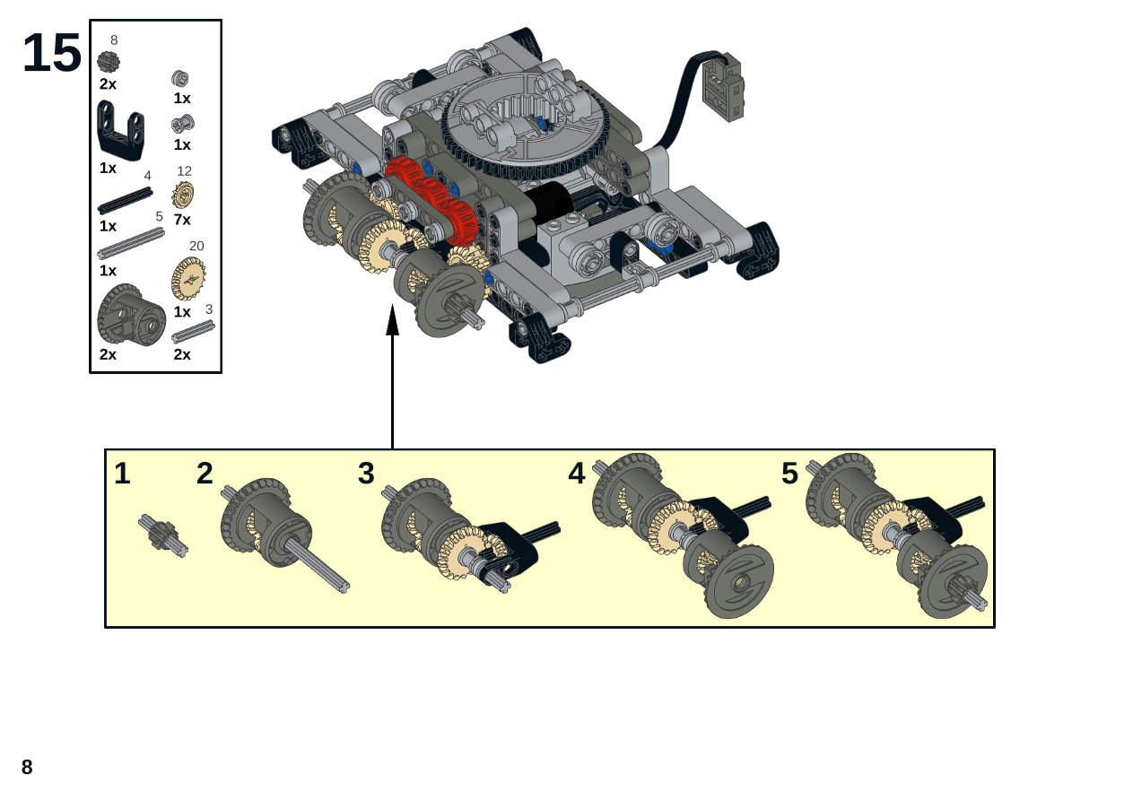 与原版相比,它使用横向减法器作为变速箱,由 2 台 L 型发动机驱动 - 一台用于驾驶,另一台用于转向。有关此功能的更多信息,请阅读 Sariel 的减法器教程。
