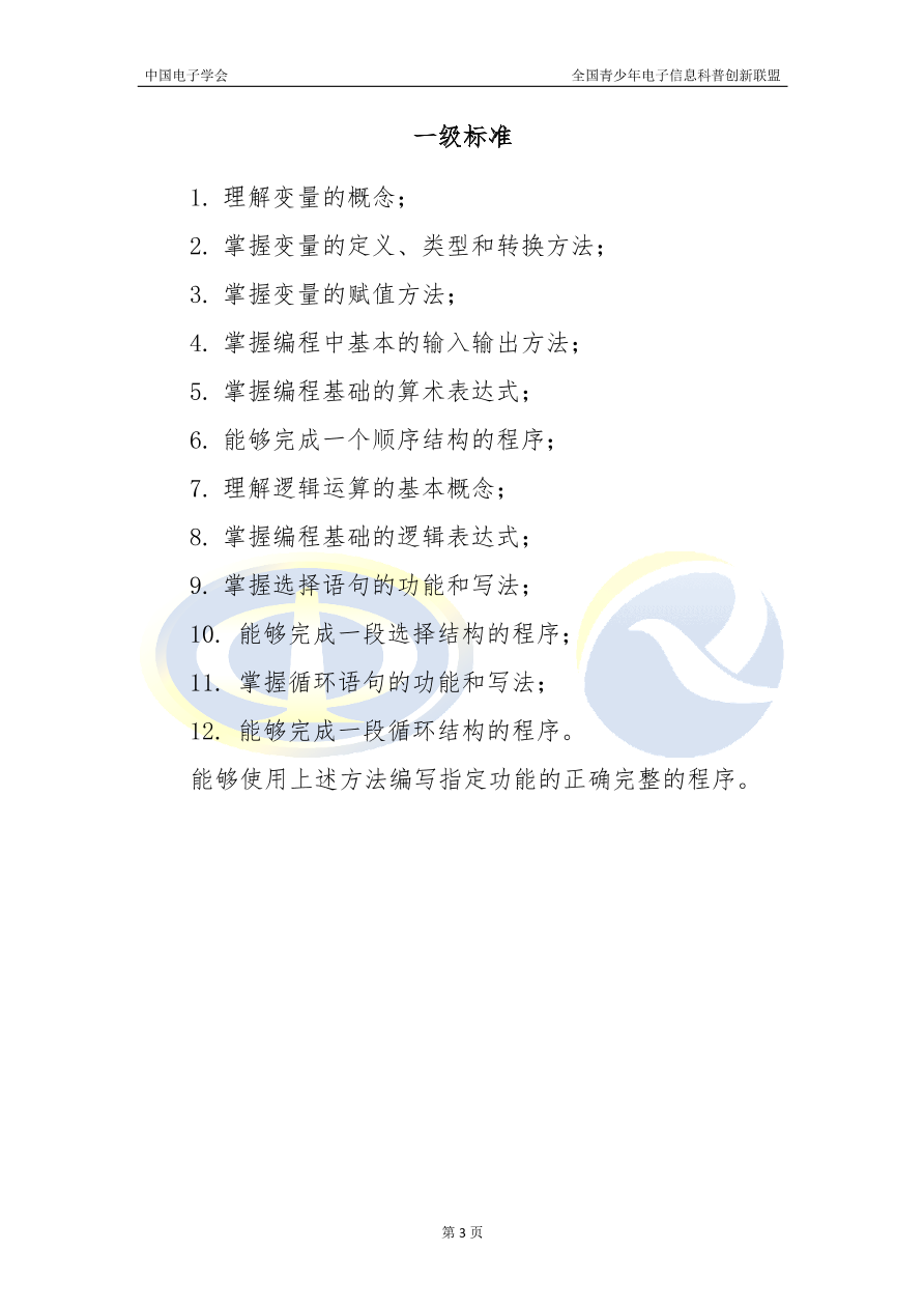 本标准可基于 Python 的任何一种集成开发编程环境,推荐使用 3.5.2 IDLE 开发环境。面向全国中小学校学生考查 Python 软件编程能力。