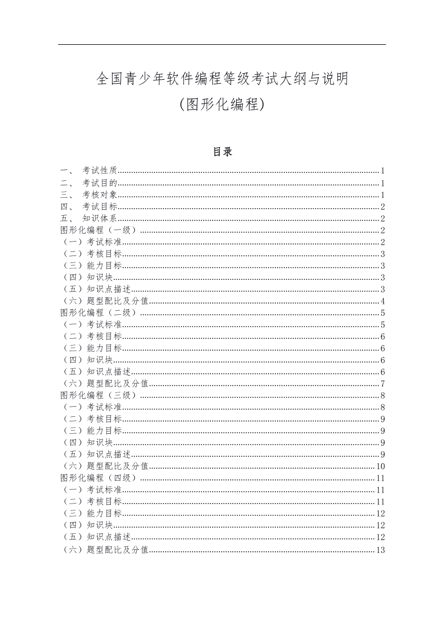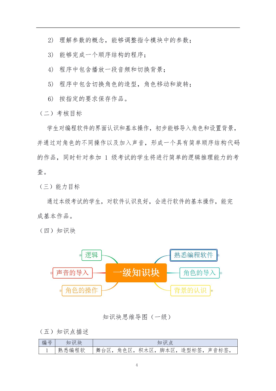 图形化编程测试划分为一至四级,考察学生掌握图形化编程的相关知识和操作能力,熟悉编程各项基础知识和理论框架。