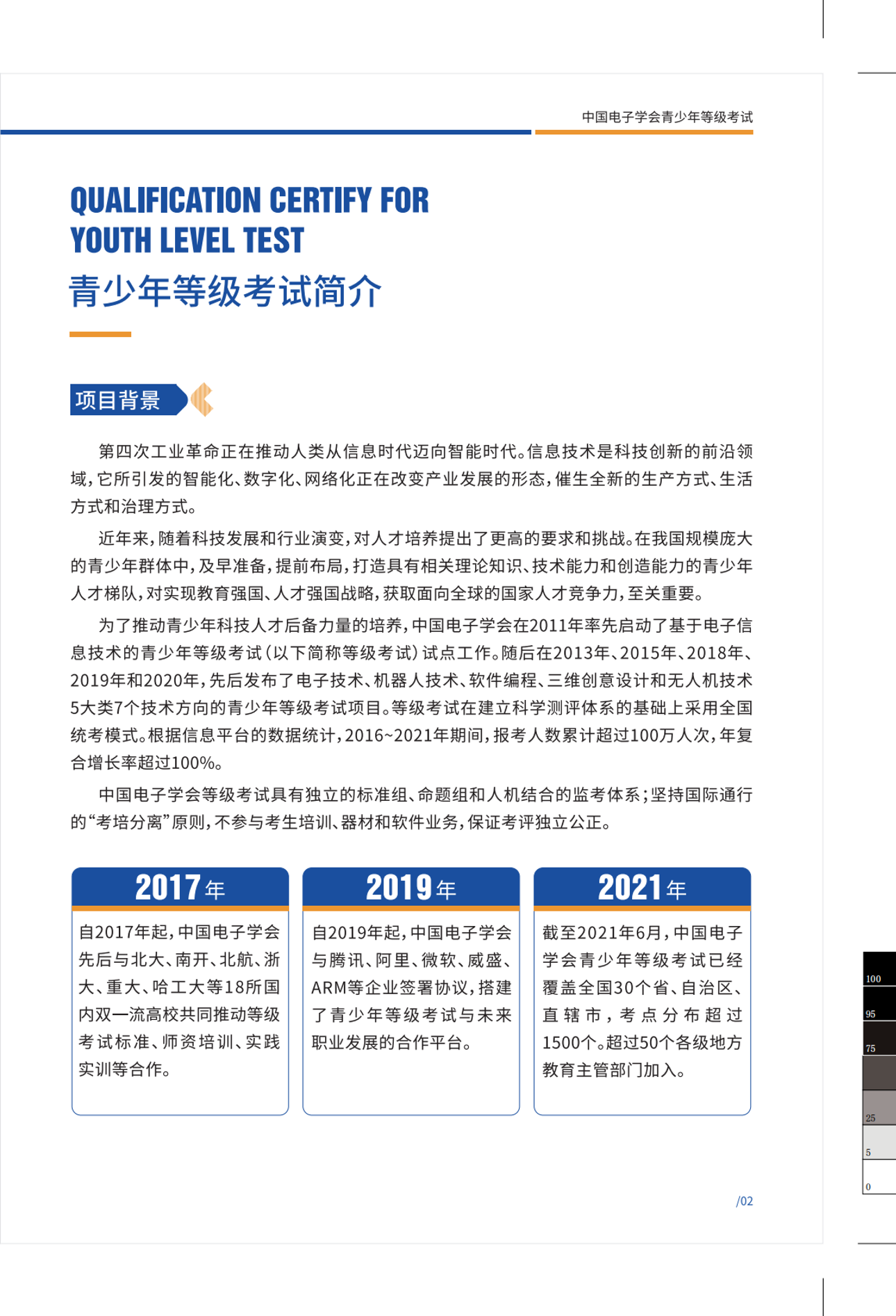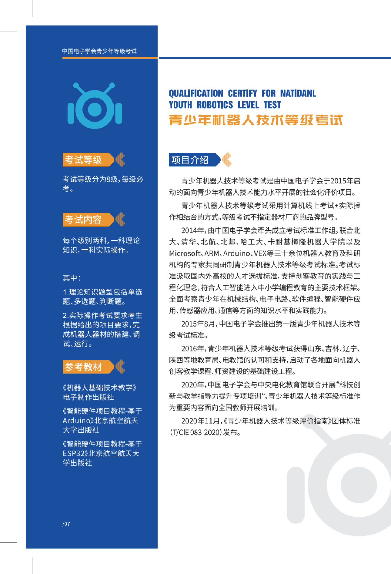 全国青少年机器人技术等级考试是由中国电子学会于 2015 年启动的面向青少年机器人技术能力水平的社会化评价项目。